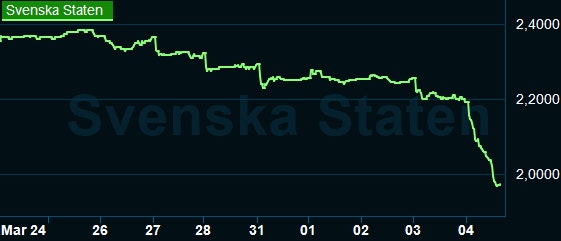 Den tolkningen görs åtminstone på de globala aktiemarknaderna där Stockholm under tidig eftermiddag faller med 3,5 procent, de övriga nordiska länderna i samma härad medan tyska DAX-indexet är ned 5 procent. Terminerna i USA pekar nu mot en öppning omkring 3 procent ned.