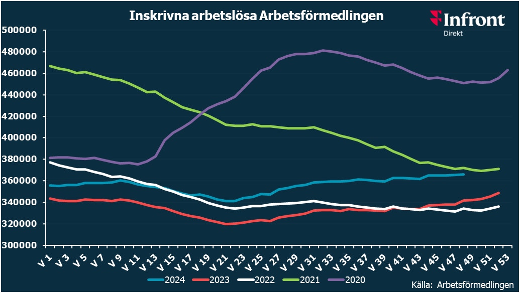 Antalet arbetslösa ökade vecka 48 och uppgick till 365.830 personer.