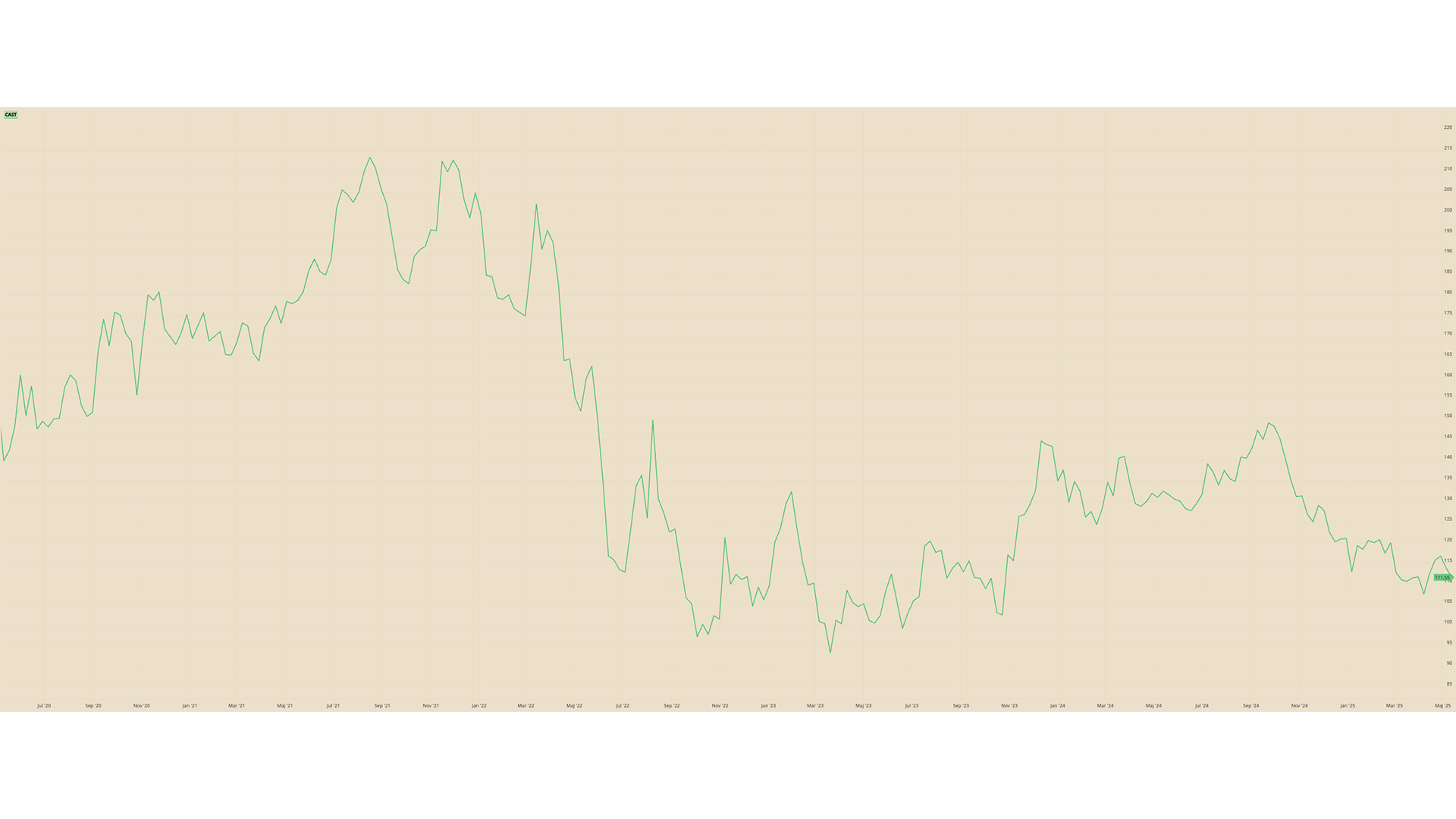 Castellums aktiekurs senaste 5 åren