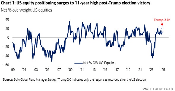 Eller så kan man lyssna på vad personerna som faktiskt placerar pengarna gör och vad de har för planer. Det är vad Bank of America, BofA, försöker göra i sin månatliga stora investerarenkät och i den färska undersökningen ligger fokus på vilka skiften i humöret som har skett efter USA-valet.