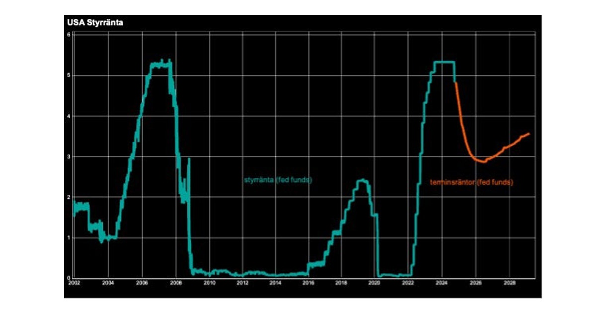 Fedordföranden James Powell förklarade beslutet med att riskbilden tippat över från stigande inflation till högre arbetslöshet. Den fortsatta gissningsleken handlar i närtid om hur stora ytterligare sänkningar det blir i höst. Räntemarknaden prisar in ytterligare tre kvarts procent men enligt medianen av bedömningarna från ledamöterna i Federal Open Market Committee (FOMC) blir det bara en halv procent till i år. Oenigheten är stor. Hela sju av nitton bedömde att räntan bara skulle behöva sänkas med ytterligare en kvarts procent i år och två medlemmar trodde att dagens räntenivå skulle vara lämplig året ut.