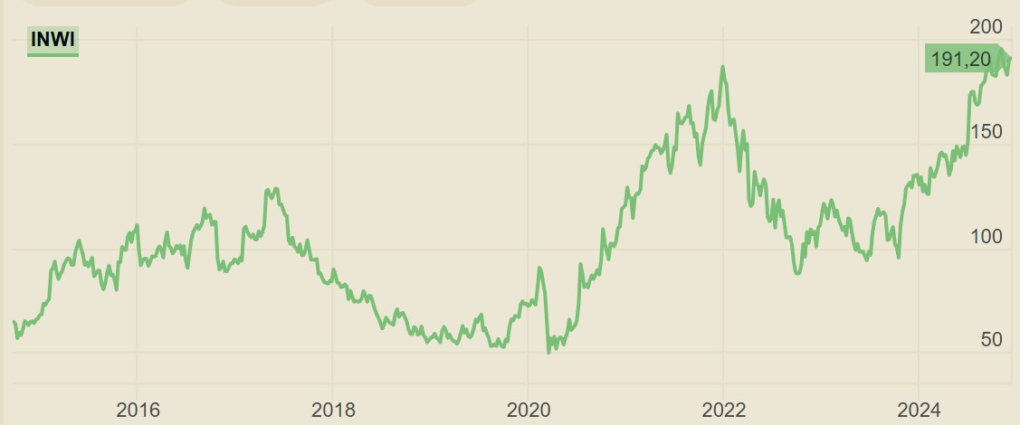 Som grafen ovan visar har det varit stora slag i Inwidos aktiekurs de senaste åren. Lite väl stora sett till hur bra bolaget är på att parera efterfrågesvängningar. En stor vana vid att hantera säsongsmönster tillsammans med en snabbfotad och decentraliserad organisation syns i form av högst begränsade marginaltapp i nedgångarna, men på börsen har svängarna tagits ut desto mer.