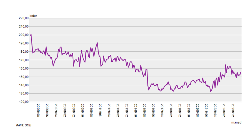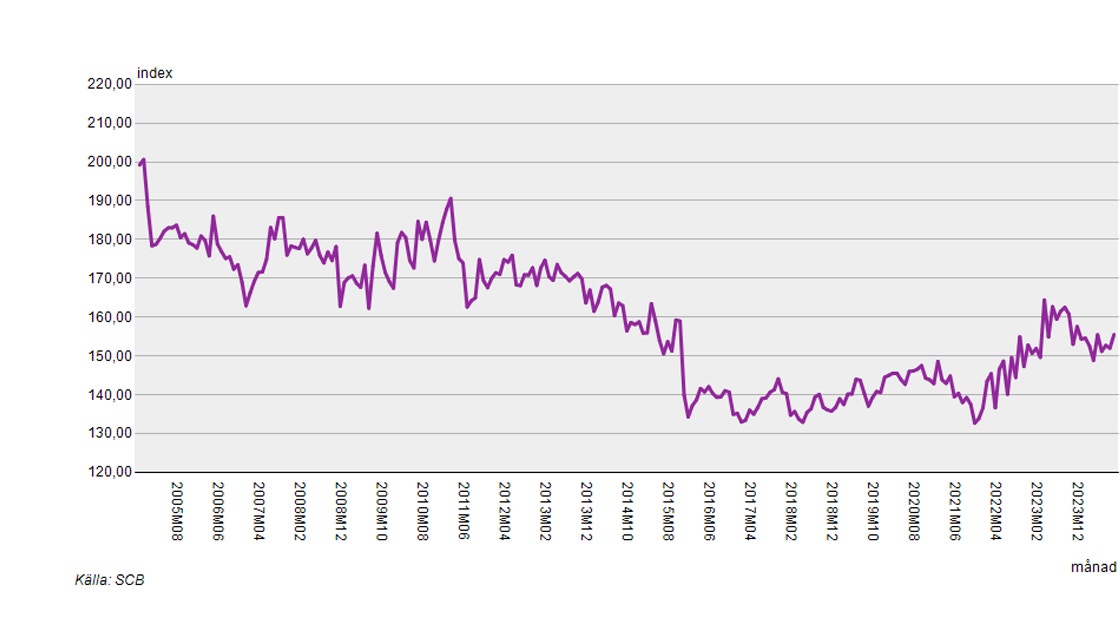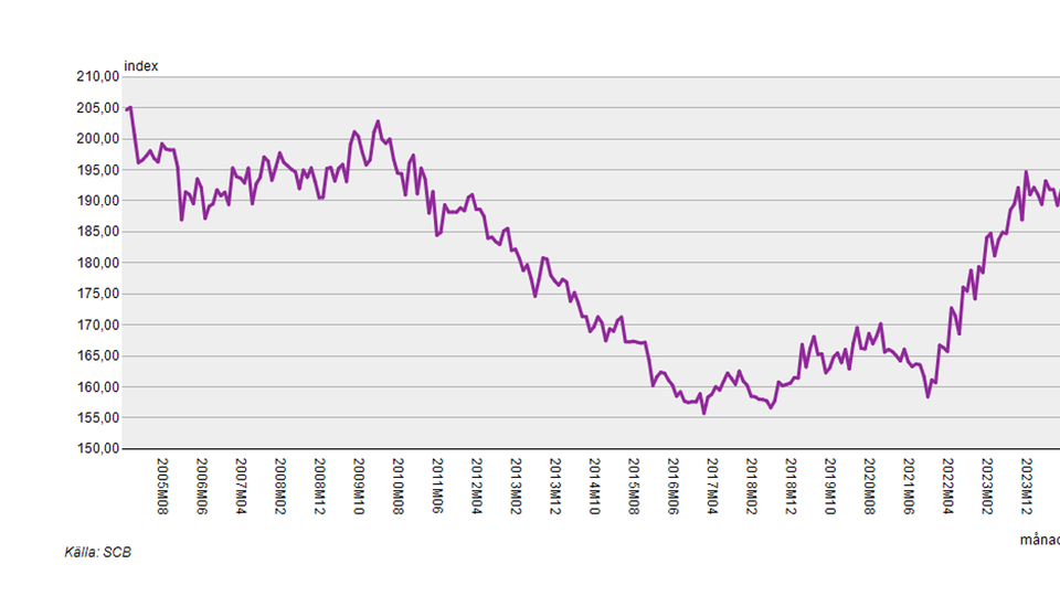 Jag tog mig friheten att ta fram prisutvecklingen för de senaste 20 åren. Som kan ses i grafen nedan är priserna generellt på hushållsutrustning tillbaka på 2010 års nivåer. Prisutvecklingen på dammsugare på längre sikt är något mer negativ, men en liknande återhämtning som för den generella kategorin kan tydas från 2022. Den positiva utvecklingen är tack vare den extrema inflationen som rått på alla håll i samhället.