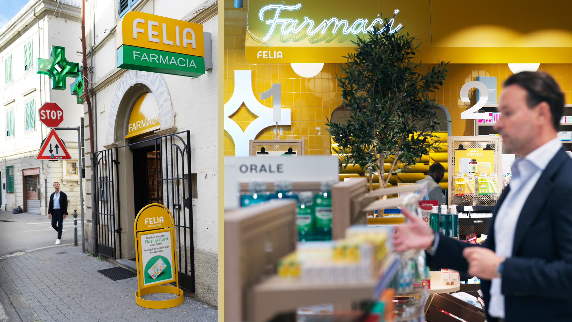 – Apoteken i Italien är fruktansvärt fula. Nedgångna och slitna. Jag ville göra något helt annorlunda. Vi håller på att renovera alla de här 20. Vi har åtta kvar.