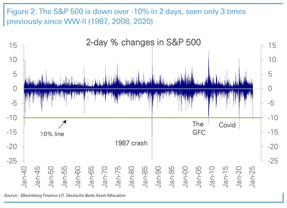 Storbanken påpekar också att 10-procents nedgång eller mer i S&P 500 på två raka handelsdagar är en mycket ovanlig företeelse, som tidigare bara skett tre gånger sedan andra världskriget. Förutom vid pandemin och finanskrisen inträffade detta 1987.