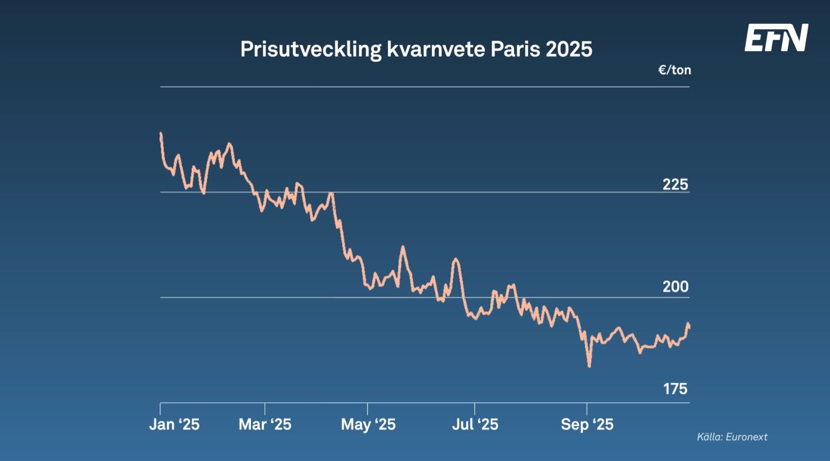 Men trots de stora volymerna är stämningen inte inte på topp bland lantbrukarna. Priserna på spannmål har fallit med omkring 15 procent jämfört med i fjol. Samtidigt ligger kostnaderna för insatsvaror – växtskyddsmedel, utsäde och maskiner – kvar på höga nivåer.