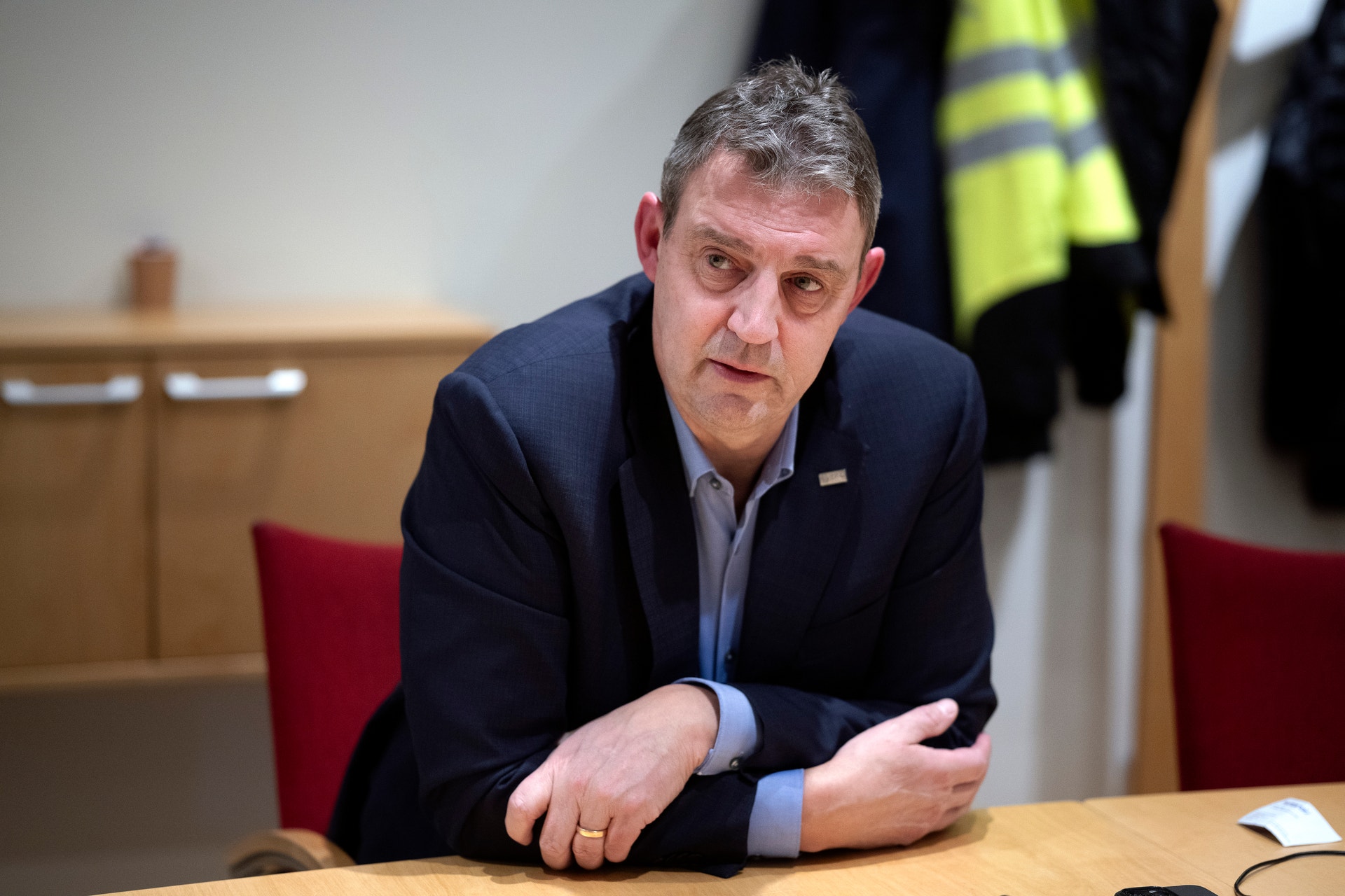 Blygsam, framhäver sig inte alls, står där rätt upp och ned och vevar med handskarna till en förare som åker förbi, slår sig i slang med killarna i ett kontrollrum om hockeyn. Träffar du honom får du anstränga dig för att förstå att han är vd för ett stort börsbolag.