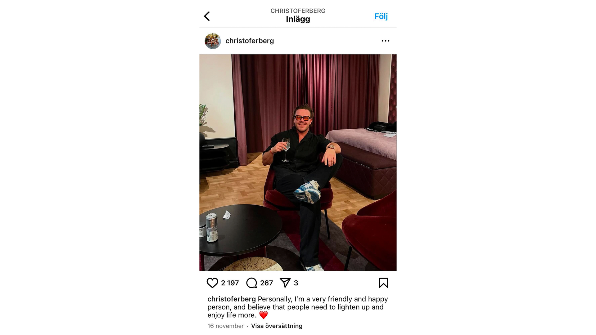 Influencern Christofer ”Chrippa” Berg gripen