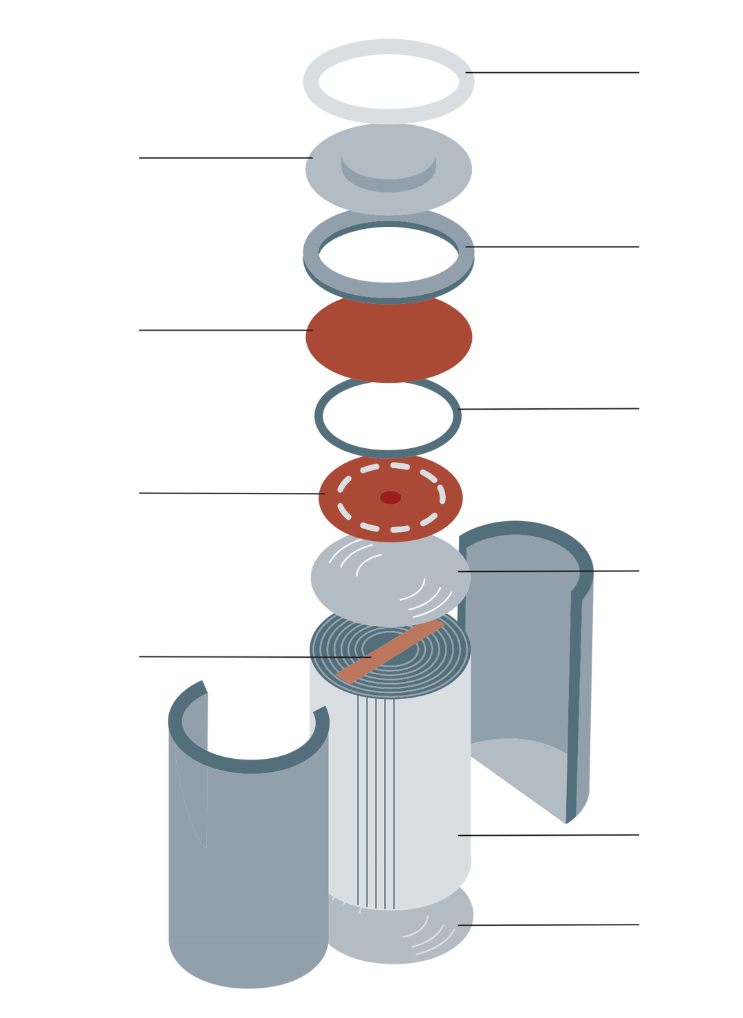 Här en sprängskiss av en cylindrisk 4680-cell, formatet som blivit branschstandard för elbilar. Inuti höljet döljer sig elektrodrullen, batteriets hjärta: tunna lager av anod, separator och katod, hårt rullade kring en kärna.