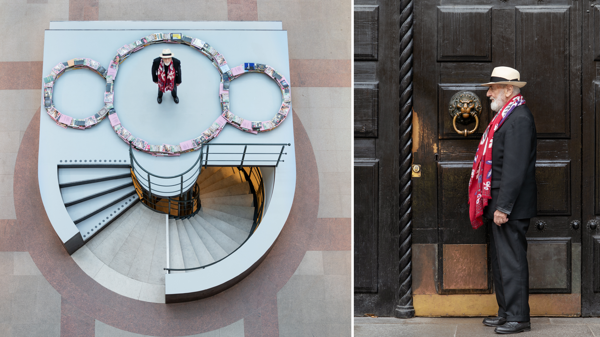 Konstnären har hunnit bli 91 år gammal, men det hindrar honom inte från att resa. I samarbete med studerande från Handelshögskolan i Stockholm har han återskapat ett av sina mästerverk, ”Terzo paradiso”, i skolans atrium.