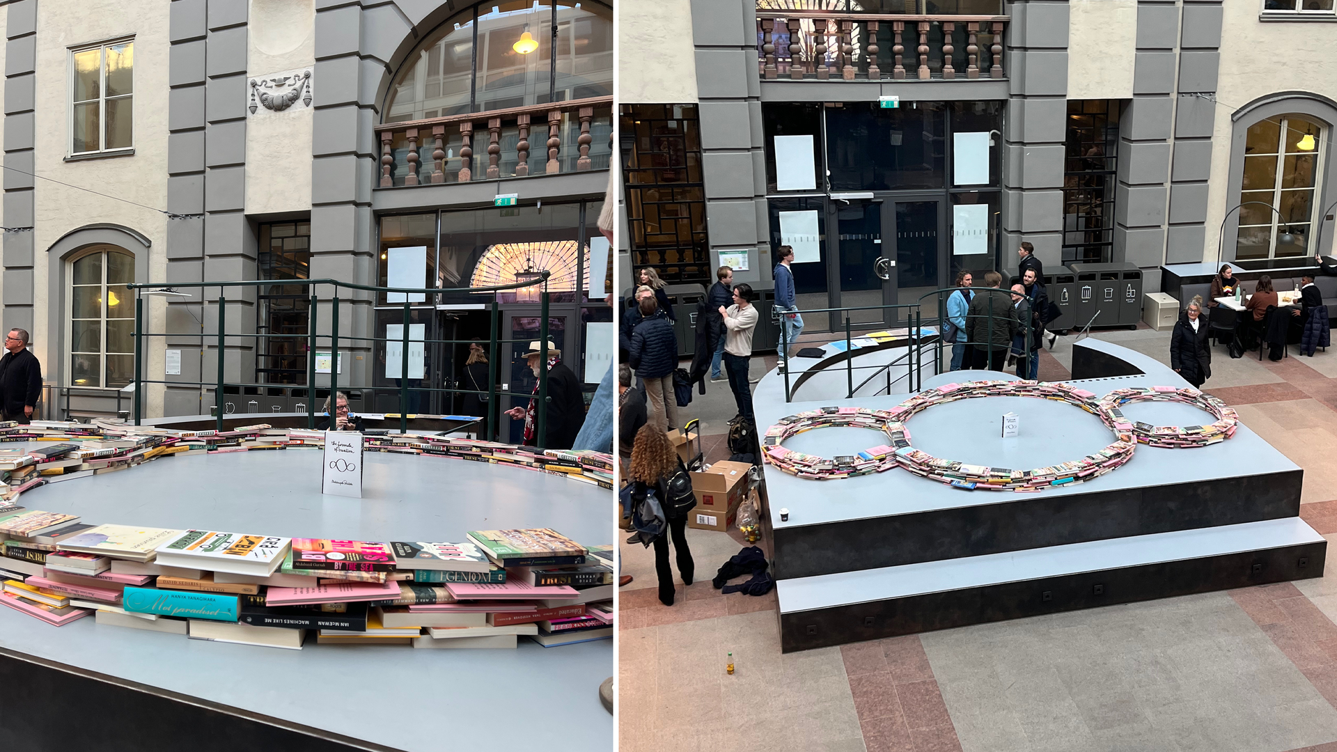 Den här gången användes böcker, vilket även kan ses som ett uttryck för Handelshögskolans och rektor Lars Strannegårds ambition att inte bara utbilda morgondagens företagsledare i siffror och algoritmer, utan att också utrusta eleverna med den mest gedigna kunskapen inom kultur under devisen att konsten och pengarna ska möta varandra.