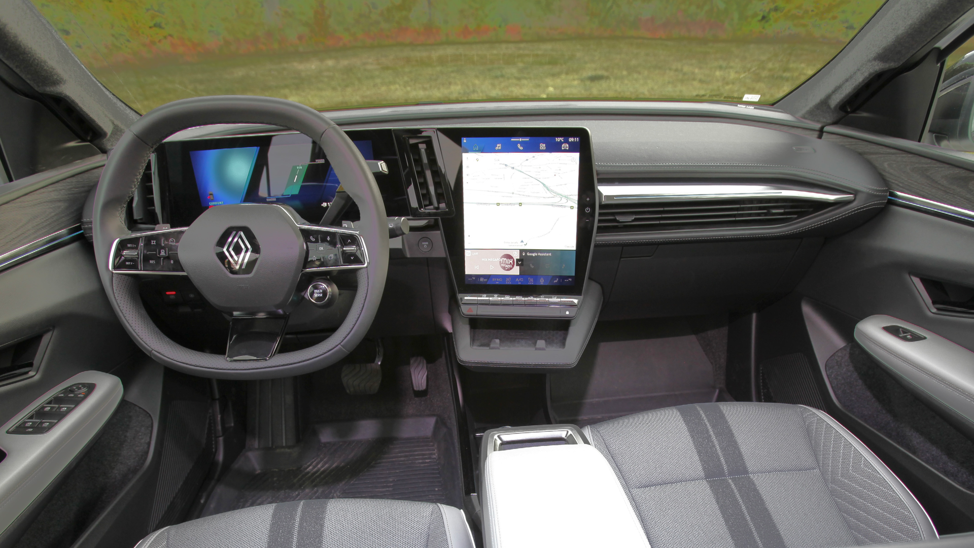 Med Scenic E-Tech har Renault gått motsatt väg och försett bilen med en uppsjö av spakar och knappar. På höger sida av ratten finns växelväljaren, paddel för att öka återvinning av bromsenergin, vindrutetorkare och spak för att sköta media. På andra sidan finns blinkers, ljus och reglage för att minska bromsåtervinningen. Det är möjligt att man vänjer sig vid alla fysiska reglage, men helt igenom lyckat är det inte heller detta.