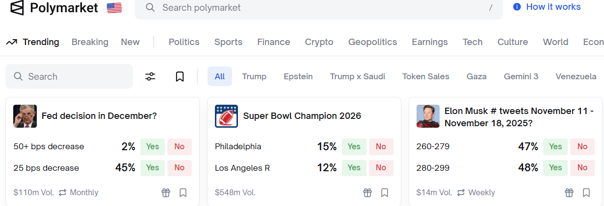 I korthet går prognosmarknader (Prediction Markets) ut på att erbjuda handel med terminskontrakt på en specifik händelse. När händelsen är över löses kontraktet upp. Det kan vara utfallet av finalen i Super Bowl, Feds kommande räntebesked eller hur många tweets Elon Musk skickar ut kommande vecka – för att ta några konkreta och aktuella exempel från Polymarket.
