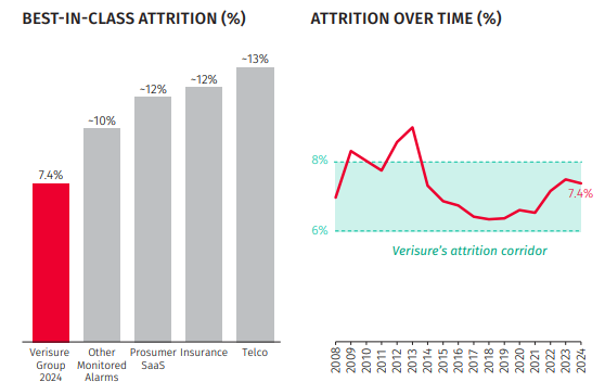Andelen återkommande intäkter ligger nu kring 90 procent och andelen kunder som lämnar (attrition rate) ligger strax över 7 procent. Det är relativt lågt både jämfört med branschkollegor och bolag i sektorer som har likartade affärsmodeller.