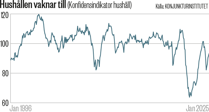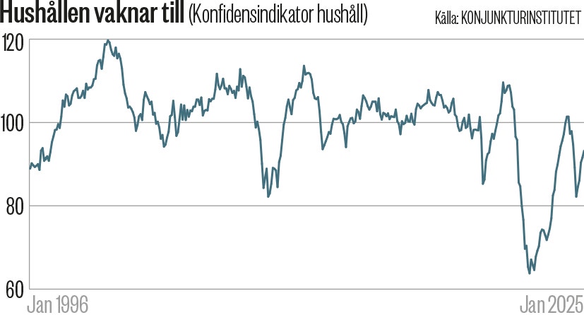 Nu gasas det. I USA kom den första räntesänkningen för året för några veckor sedan och i Sverige överraskade Riksbanken strax därefter många bedömare med sin sänkning till 1,75 procents styrränta. Regeringen har samtidigt lagt fram en offensiv höstbudget som ska göra livet lättare för hushållen. Att det ljusnar syns också i Konjunkturinstitutets konfidensindikator för hushållen som steg i september för femte månaden i följd.