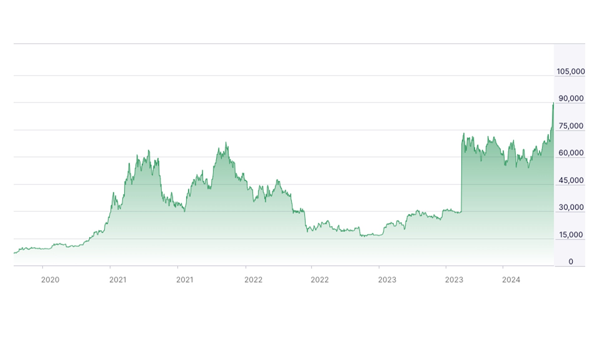 Värdet på Bitcoin har följaktligen skjutit i höjden. Morgonen efter valet hade kursen stigit med 25 procent sedan mitten av oktober. Denna vecka översteg den för första gången 90 000 dollar, eller 20 procent till. Sedan kraschen för två år sedan har den ökat i värde med omkring 460 procent. Sedan Donald Trump blev president första gången för åtta år sedan? 12 800 procent, ungefär. En del ser den utvecklingen som ett tecken på en revolution som ännu bara är i sin inledningsfas; andra ser den branta kurvan mer som ett kvitto på kryptomarknadens inneboende volatilitet.