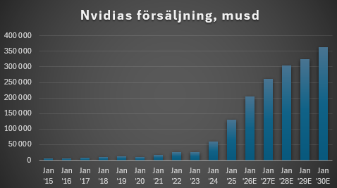 Den initiala reaktionen på eftermarknaden på onsdagen är en kursnedgång på ett par procent vilket antyder att många på aktiemarknaden hade hoppats på ännu mer. Hur reaktionen blir på USA-börsen under ordinarie handel på torsdagen återstår att se men det man ska ha med sig är att Nvidia har tagit för vana att slå prognoserna under en lång tid, vilket gör att förväntningarna i praktiken ofta är högre än vad de formella analytikersammanställningarna visar.