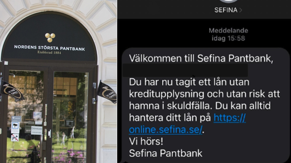 Under torsdagen nåddes privatpersoner av sms från Sefina pantbank med bekräftelse på att lån tagits trots att mottagarna inte alls ansökt om något lån hos företaget.