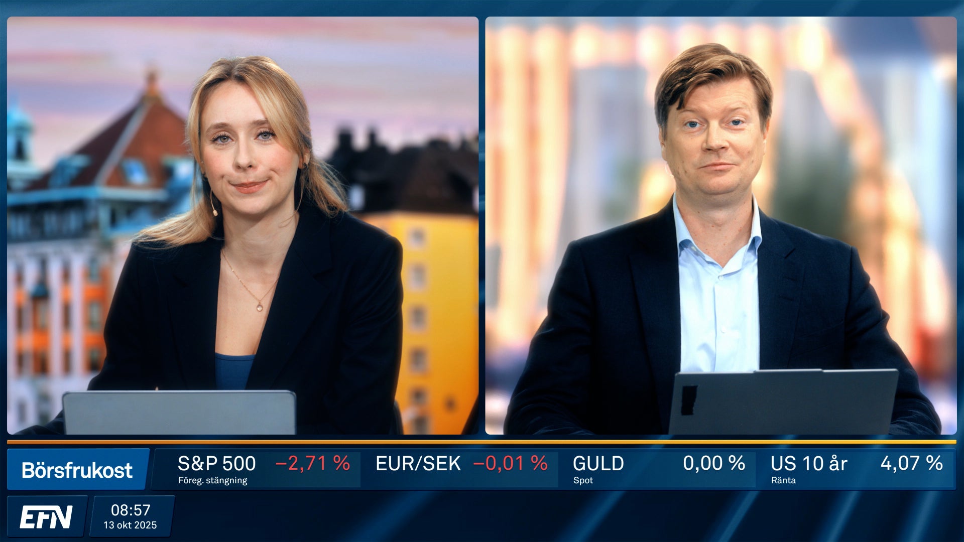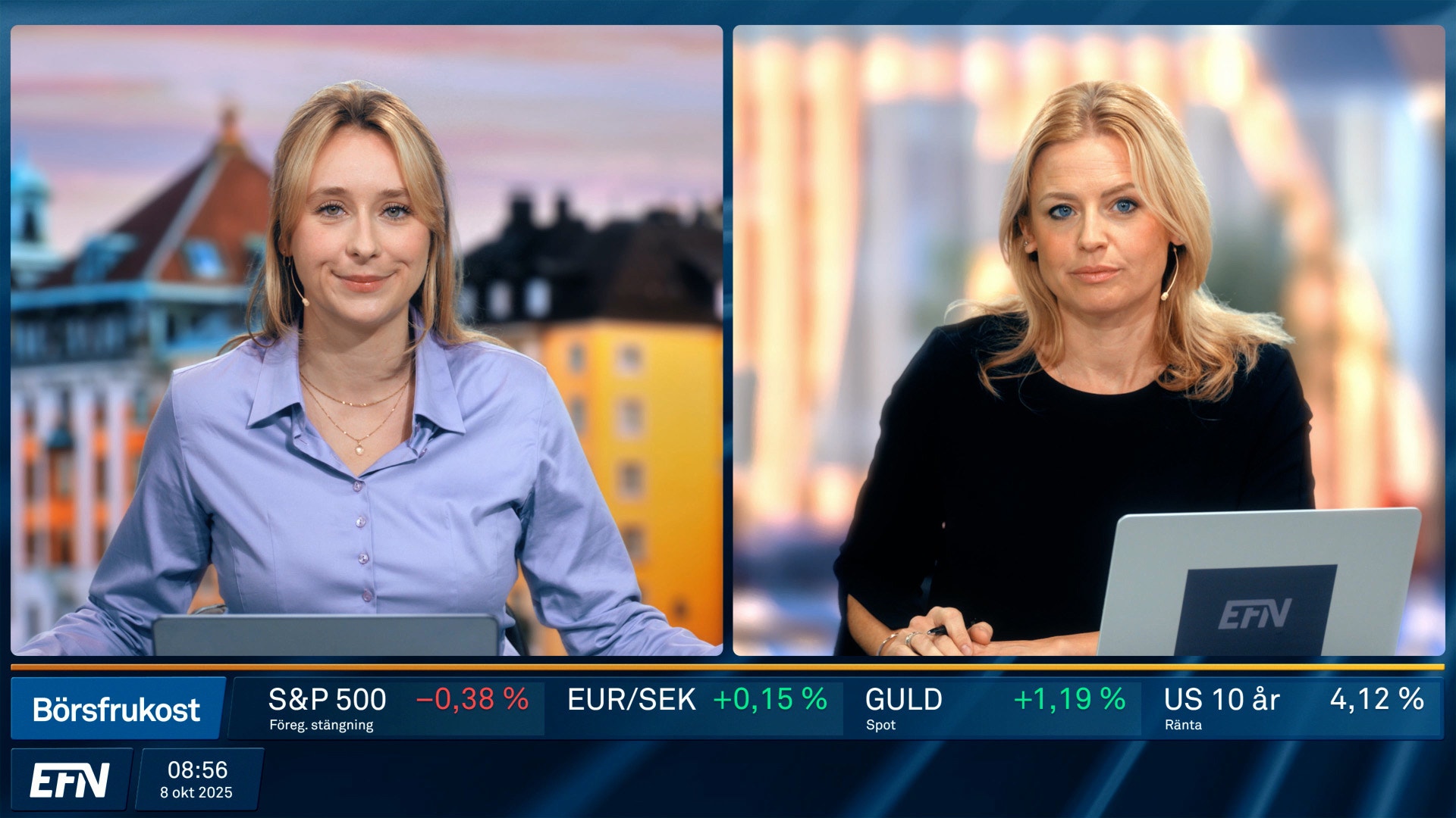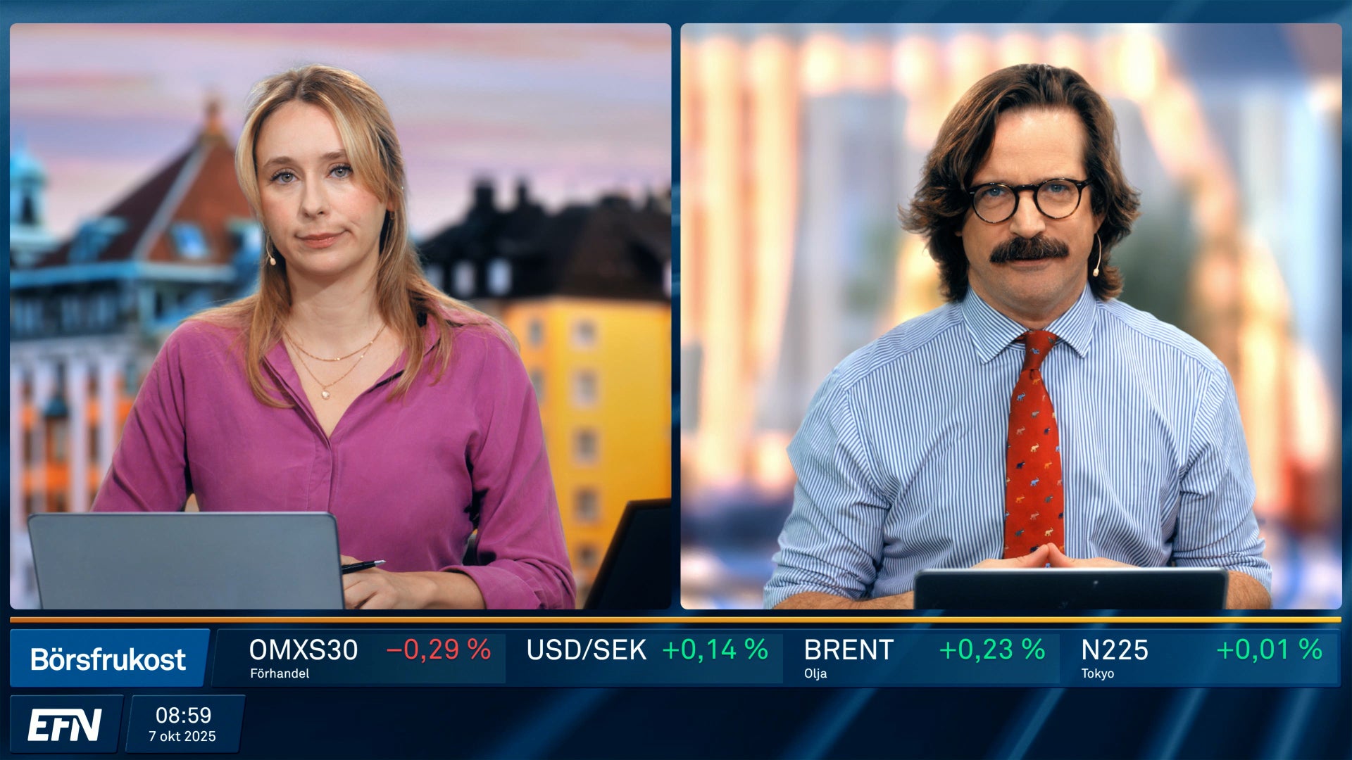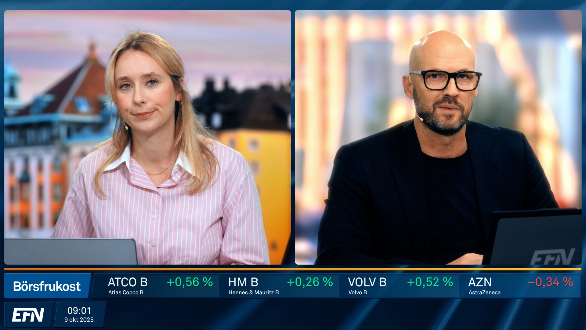 Börsfrukost ger dig de senaste bolagsnyheterna och börsöppningen live. Dagens börsrörelser och marknadens viktigaste händelser kommenteras och analyseras av EFN:s och Finansmagasinets egna programledare och analytiker. Varje vardag 08.55 på EFN.se.