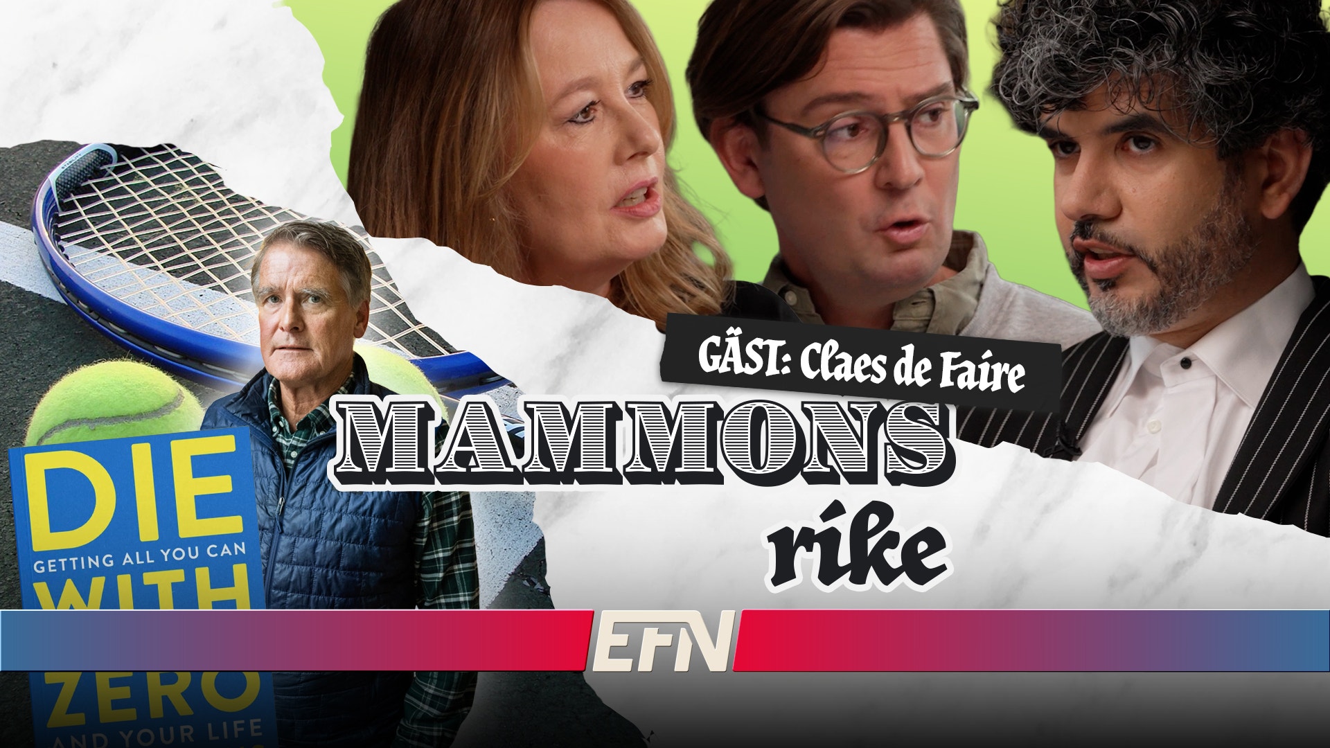 Ett program, en programledare, en panel, oändliga diskussioner. Det är innehållet i EFN:s populärkulturella samtids- och samhällsmagasin där allt blandas – stort och smått, högt och lågt, djupt och brett. Oavsett de aktuella ämnen som avhandlas i Mammons rike är den minsta gemensamma nämnaren ekonomi. Med Jonas Malmborg, Fredrik Strage, Åsa Linderborg och Agri Ismaïl.