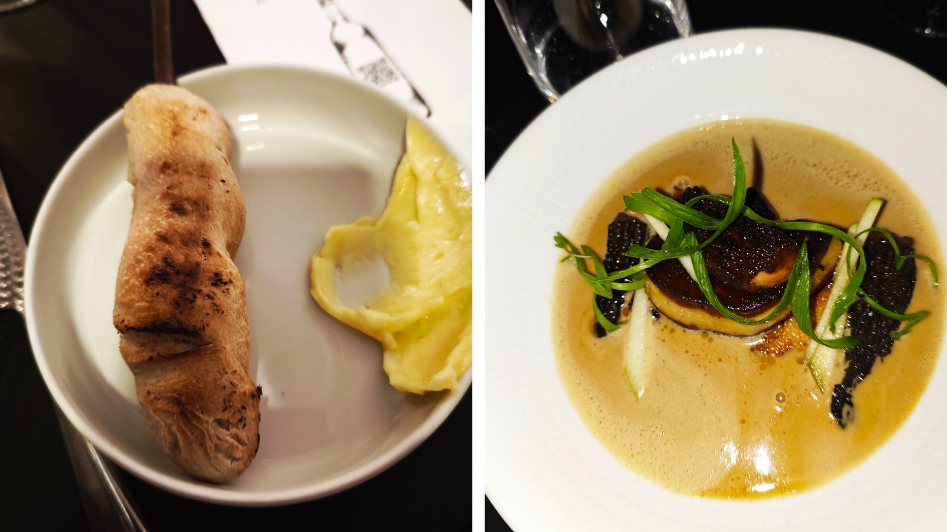 Jag kanske glömde att berätta att Mutantur inte har öppet på helgerna. Då ska nämligen personalen vara ledig och ta hand som sina familjer. Undertexten är tydlig, man ska vara mycket glad att man över huvud taget får lov att äta här. Samma signaler skickar servitriserna ut. Detta i kombination med att jag vill ha något i magen snabbt som attan gör mig riktigt irriterad. Denna känsla mildras dock när min dry martini (170 kronor) och tre pinnbröd med ljummet vispat smör (135 kronor för alla tre) gör entré efter minst 15 minuters väntan. Brödet smakar lite magiskt som när man i tidiga tonår fick grilla pinnbröd över öppen eld i scouterna.