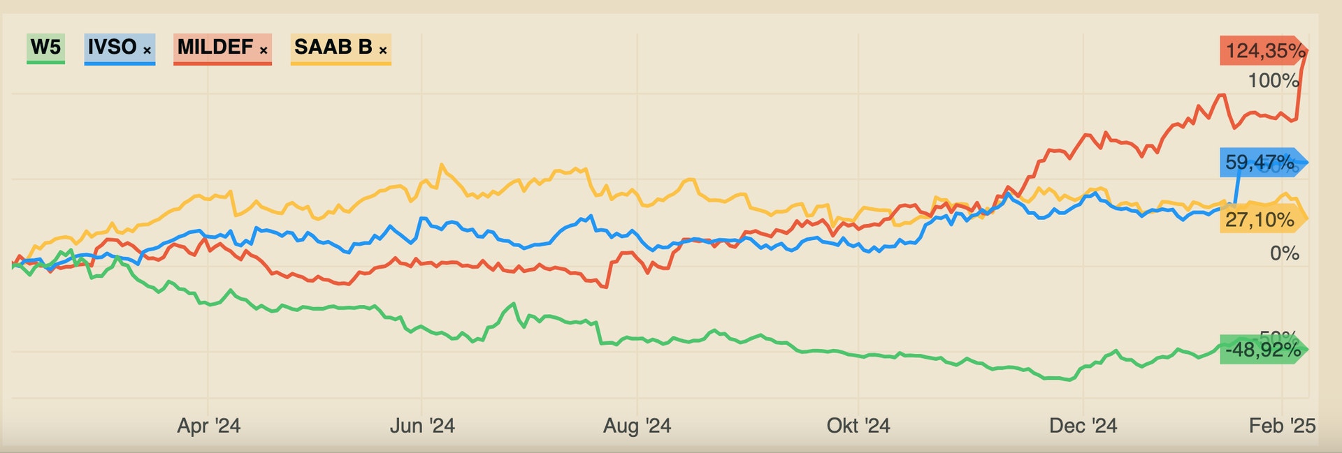 Utöver försvarsjätten Saab finns redan flera större svenska underleverantörer på börsen som W5 Solutions som Invisio och Mildef som bland annat utvecklar olika teknik, kommunikations- och datalösningar.