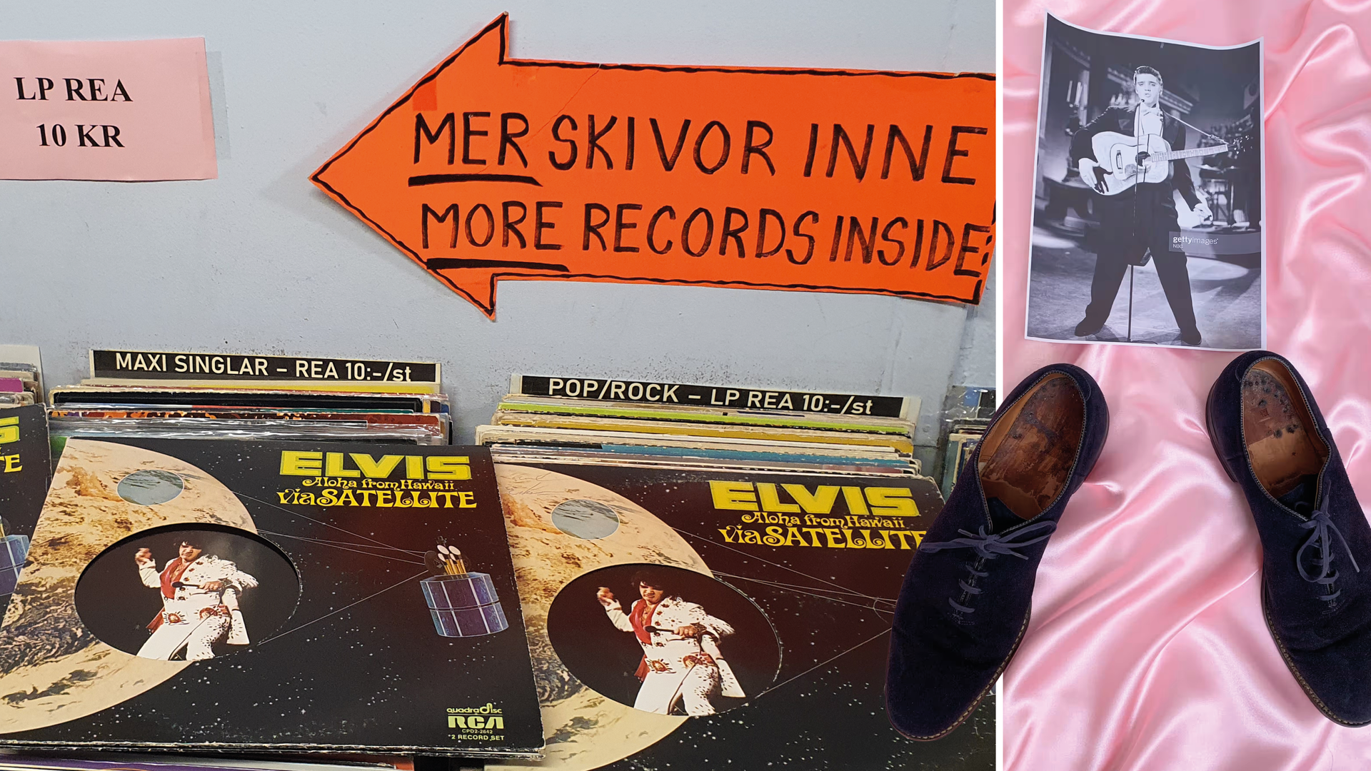 Nostalgipalatset sålde visserligen den ovanliga, schweiziska samlingen "Golden boy" för 16 000 kr men de flesta av dina andra skivor kostade knappt över hundralappen. Och när jag var på väg ut fick jag syn på tre ex av livedubbeln ”Aloha from Hawaii via satellite” i backen för tiokronorsvinyl.