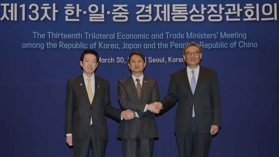 Den sydkoreanske industriministern Ahn Duk-Geun säger att de tre länderna måste hitta gemensamma svar på de globala utmaningar som länderna står inför.