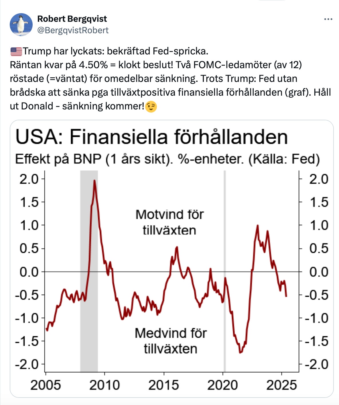 – Det kan vara ett tecken på att Fed går mot en lättare penningpolitik framöver. Särskilt Waller tenderar att visa vägen för resten av Fed.