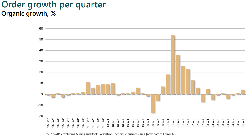 Värt att lyfta fram ur skuggorna är också vilken högaktiv serieförvärvare Atlas Copco är och att det nästan alltid handlar om små tilläggsförvärv där riskerna är begränsade. Bara under 2024 gjorde man 33 förvärv, de allra flesta med en omsättning mellan 30-300 miljoner kronor, och det trumfar 2023 där man landade 17 förvärv.